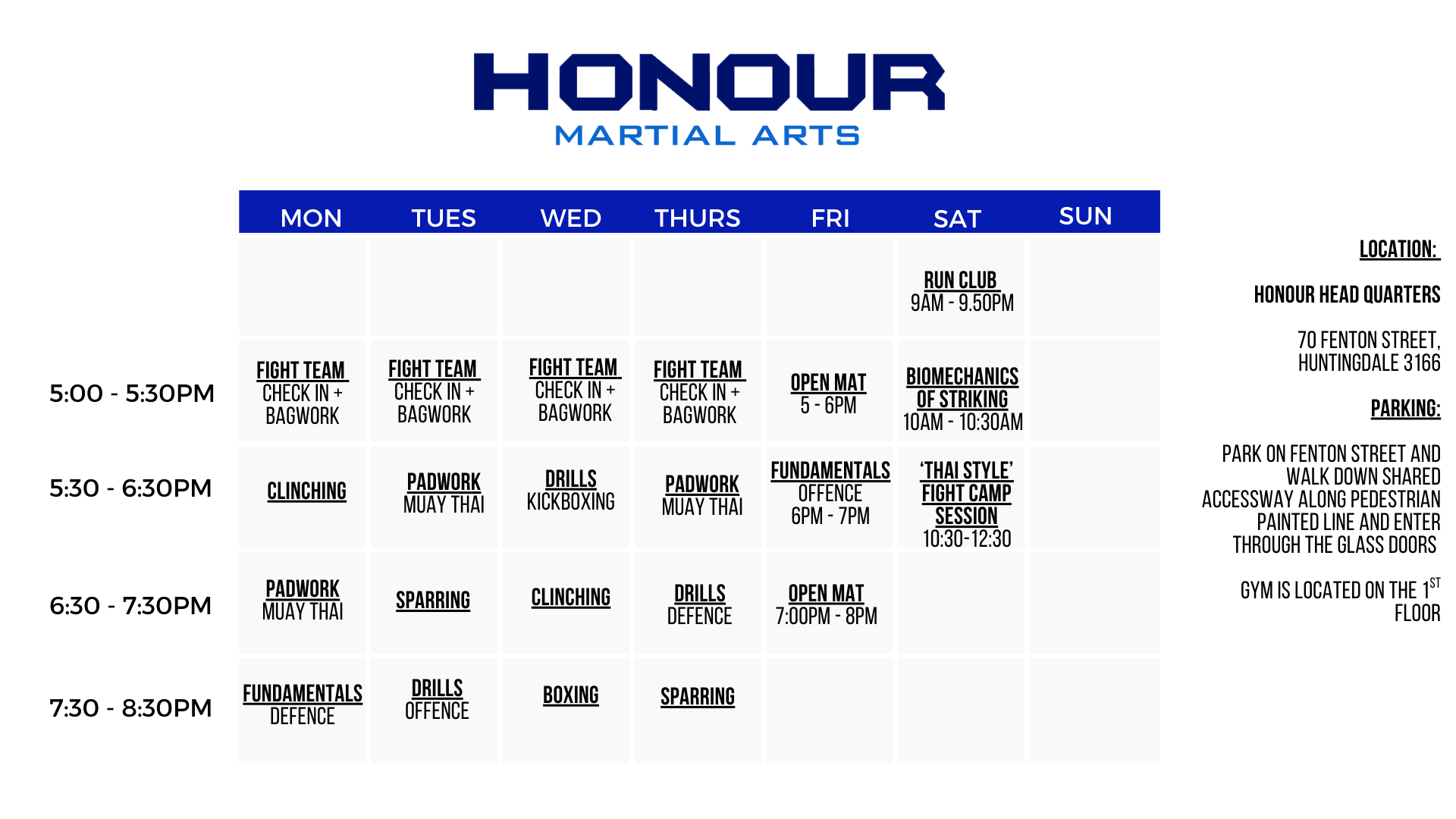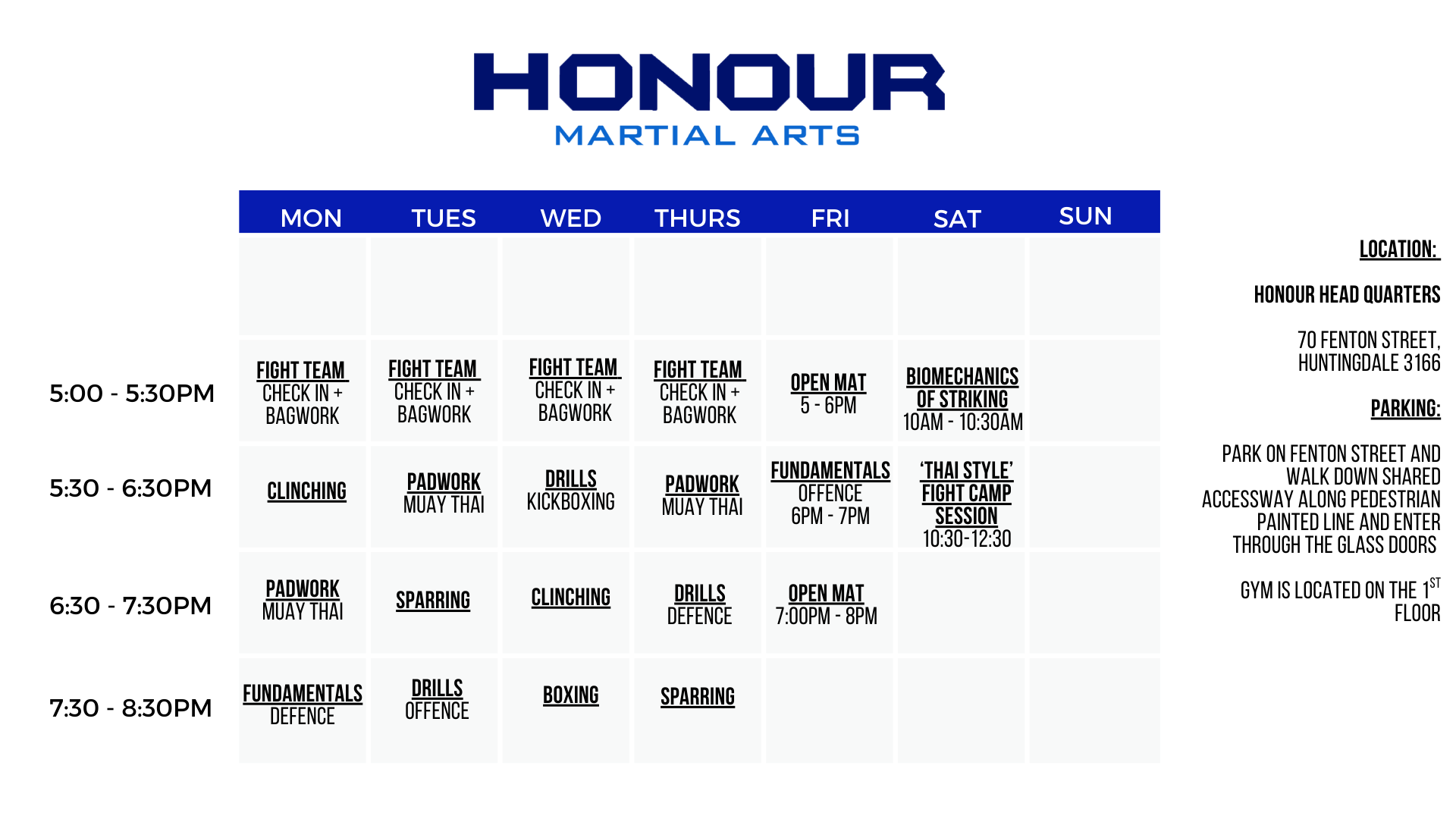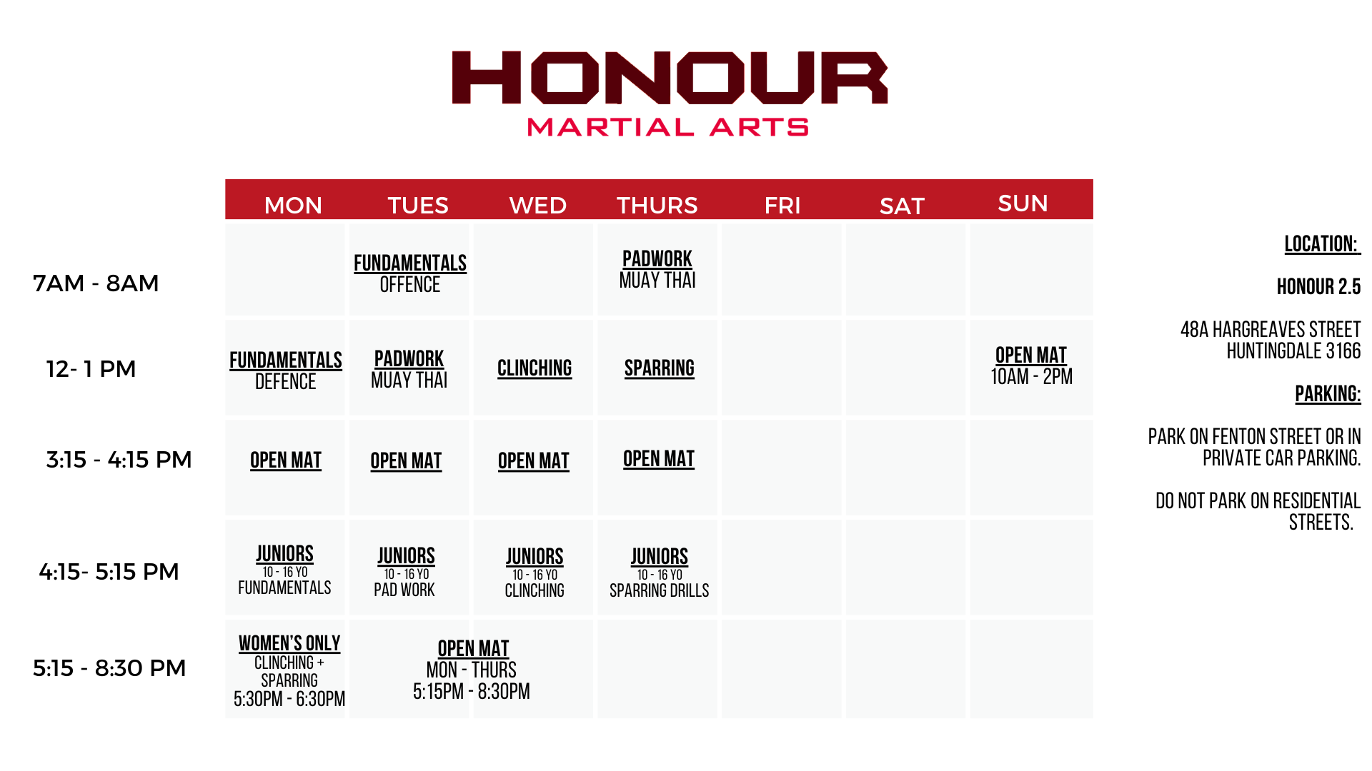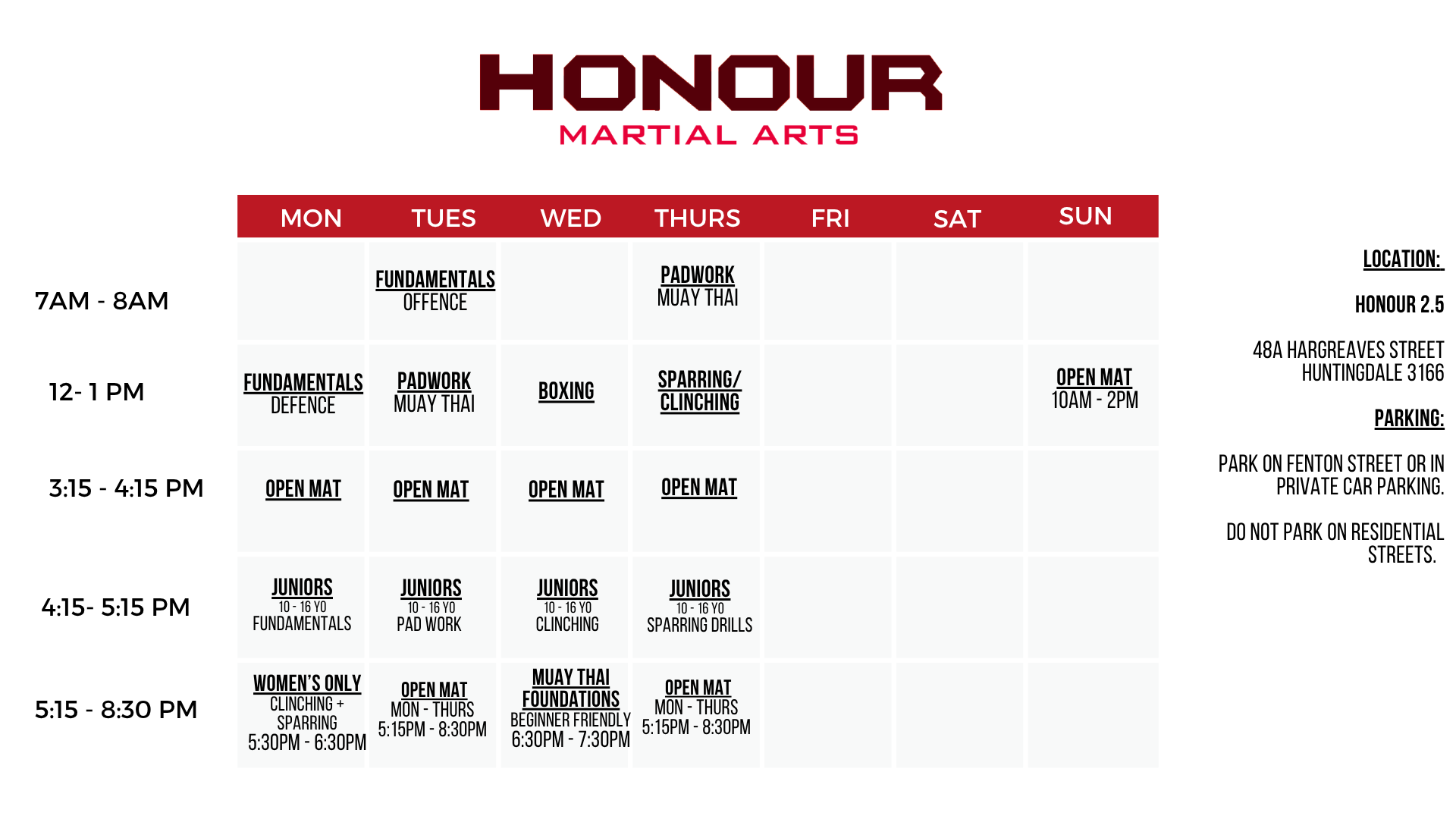 The Teens Muay Thai class is suited to those who are between 10-16 years old who would like to train with students in a similar age group. At Honour we offer 4x per week Juniors classes that aim to lay solid foundations in Muay Thai so that when you're ready to take it to the next step and train in the full schedule - you have the confidence to do so!